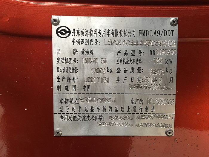| 黃海牌DD5190XGCA型工程車 | |||